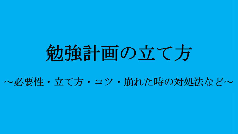 この記事では、勉強計画の立て方や崩れた時の対処法について解説しました。